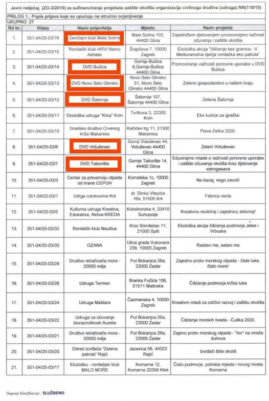 Među odobrenim prijavama nalazi se 6 prijava s glinskog područja.