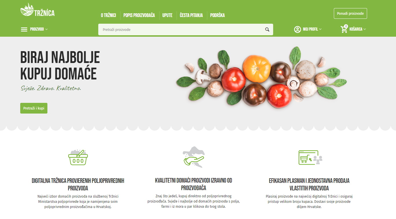 Ministarstvo poljoprivrede poziva vas da se pridružite nacionalnoj internet tržnici – Tržnica.hr, obogatite ponudu domaćih proizvoda s njiva, farmi i ribarica iz cijele Hrvatske i omogućite građanima Hrvatske da za sebe i svoje obitelji biraju najbolje i kupuju domaće.
